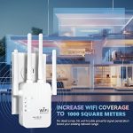 Со 4 моќни антени, WIFINA WiFi проширувачот ги елиминира мртвите зони, обезбедувајќи силно и стабилно WiFi покривање низ вашиот дом или канцеларија, до 1000 квадратни метри.