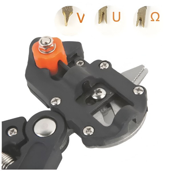 Овој алат располага со 3 заменливи острици (V, U, Ω) кои овозможуваат изведување на различни видови резови, правејќи го совршен за различни активности на резидба и калемење.