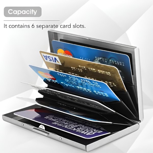Направен од висококвалитетен не’рѓосувачки челик, овој паричник е поиздржлив и со подолг рок на траење од пластичните или алуминиумските опции, нудејќи супериорна заштита за вашите картички.