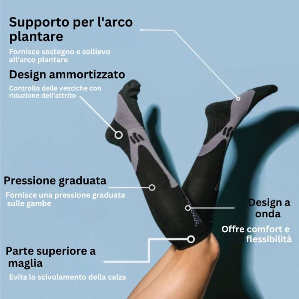 Чувствувајте се удобно во вашите стапала цел ден со компресивните чорапи PRESSOSOX. Тие го намалуваат отокот и олеснуваат болката, обезбедувајќи удобна поддршка додека работите, патувате или вежбате.