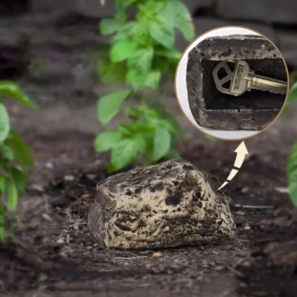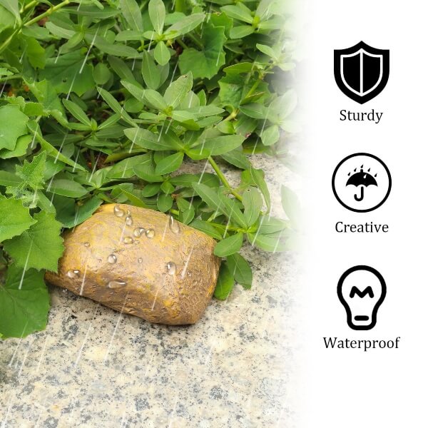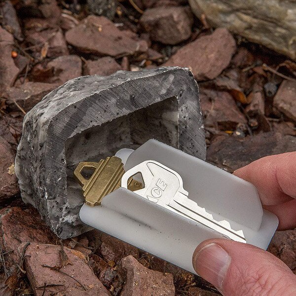 Овој држач за клучеви во форма на камен се интегрира совршено во надворешните средини, осигурувајќи дека вашите клучеви остануваат безбедни и скриени.
