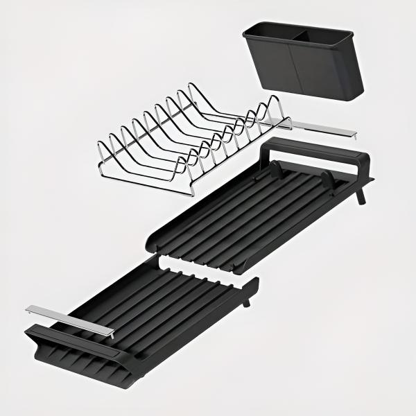 Благодарение на неговиот склоплив дизајн, може да се прилагоди во компактна или проширена форма во зависност од количината на садови што треба да се измијат.