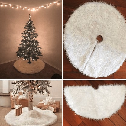 Со својот елегантен дизајн, белиот крзнен ќилим без напор создава прекрасен снежен ефект под елката. Се вклопува совршено со сите видови божиќни украси, правејќи го универзален избор за секоја елка.