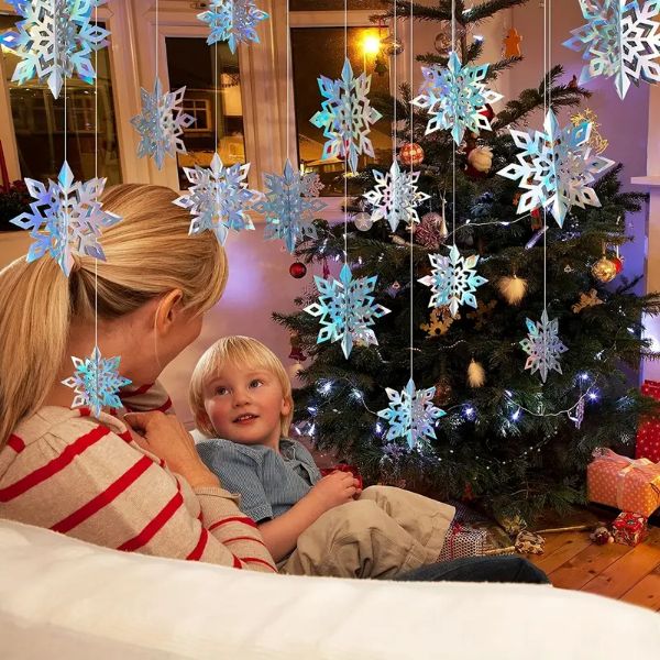 Овие иридисцентни хартиени снежинки се погодни за различни прилики, вклучувајќи украсување за божиќни забави, новогодишни забави, роденденски забави со тема Frozen, потреби за бебешки тушеви и домашни украси за празниците.